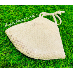 WHITE SEQUINS COTTON MASK